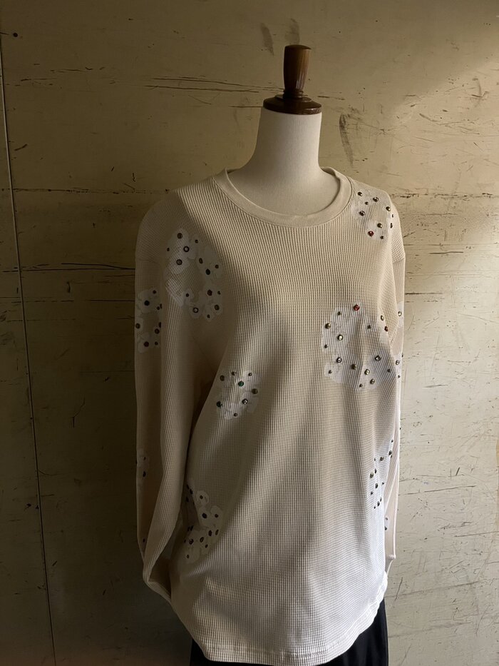 ラインストーンで表現したサーマルトップスです。