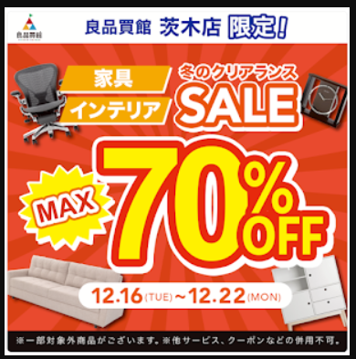 | 2025.12.18 | 【12/16~12/22】茨木店 家具・インテリアクリアランスセール |